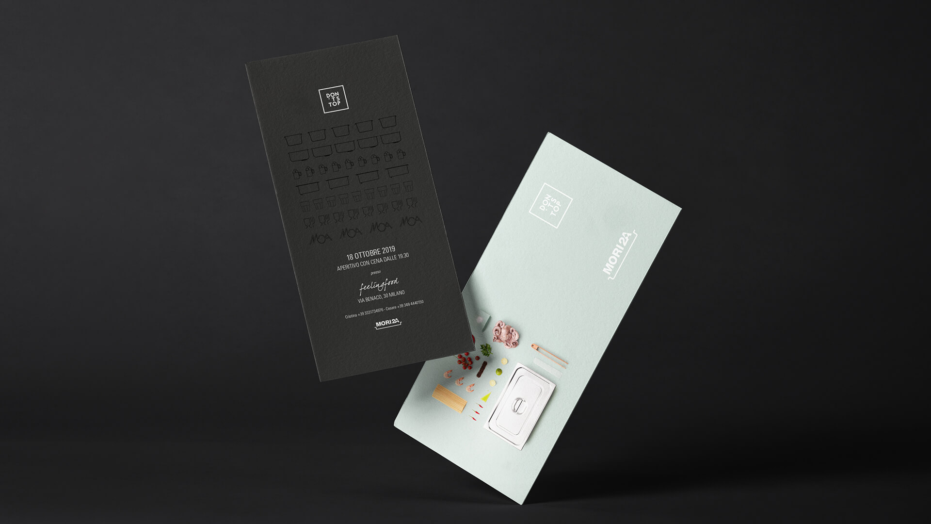 Il nuovo catalogo è stato poi presentato all’interno di un evento al Feeling Food Milano, firmato nell’organizzazione e nella comunicazione da Gruppo WISE che si è occupato in particolare della scelta e dell’allestimento della location, della gestione dei fornitori e degli inviti. Una serata soft alla quale hanno partecipato oltre 100 persone. Per ricreare la giusta atmosfera e allo stesso modo presentare le novità degli articoli di MORI 2A sono state allestite due stanze: la prima dedicata a far conoscere i prodotti dell’azienda, la seconda, più conviviale e rilassante dove gli ospiti potevano degustare tranquillamente il cibo ascoltando musica dal vivo. Nessuna presentazione ufficiale: la stanza stessa, nell’occasione, è stata veicolo di comunicazione del nuovo concept. La presentazione del catalogo e dei prodotti erano infatti percepibili attraverso sette pannelli (che riprendevano le immagini di apertura dei singoli volumi), un video in loop che presentava i 7 cataloghi, il buffet realizzato utilizzando la “linea buffet” di MORI 2A, e gli stessi allestimenti delle tavole: tovagliette, bicchieri, piatti, ciotole e accessori per finger food erano infatti realizzazioni di MORI 2A.